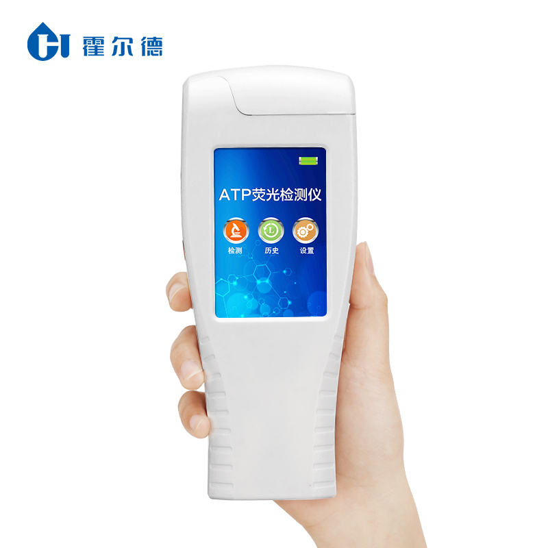 ATP生物熒光檢測儀是山東霍爾德電子科技有限公司自主研發上市全新升級產品,大屏幕觸摸顯示屏,代替傳統按鍵。操作采用生物化學反應方法檢測ATP含量,ATP熒光檢測儀基于螢火蟲發光原理,利用“熒光素酶—熒光素體系”快速檢測三磷酸腺苷(ATP)。ATP拭子含有可以裂解細胞膜的試劑,能將細胞內ATP釋放出來,與試劑中含有的特異性酶發生反應,產生光,再用熒光照度計檢測發光值,微生物的數量與發光值成正比,由于所有生物活細胞中含有恒量的ATP,所以ATP含量可以清晰地表明樣品中微生物與其他生物殘余的多少,用于判斷衛生狀況。